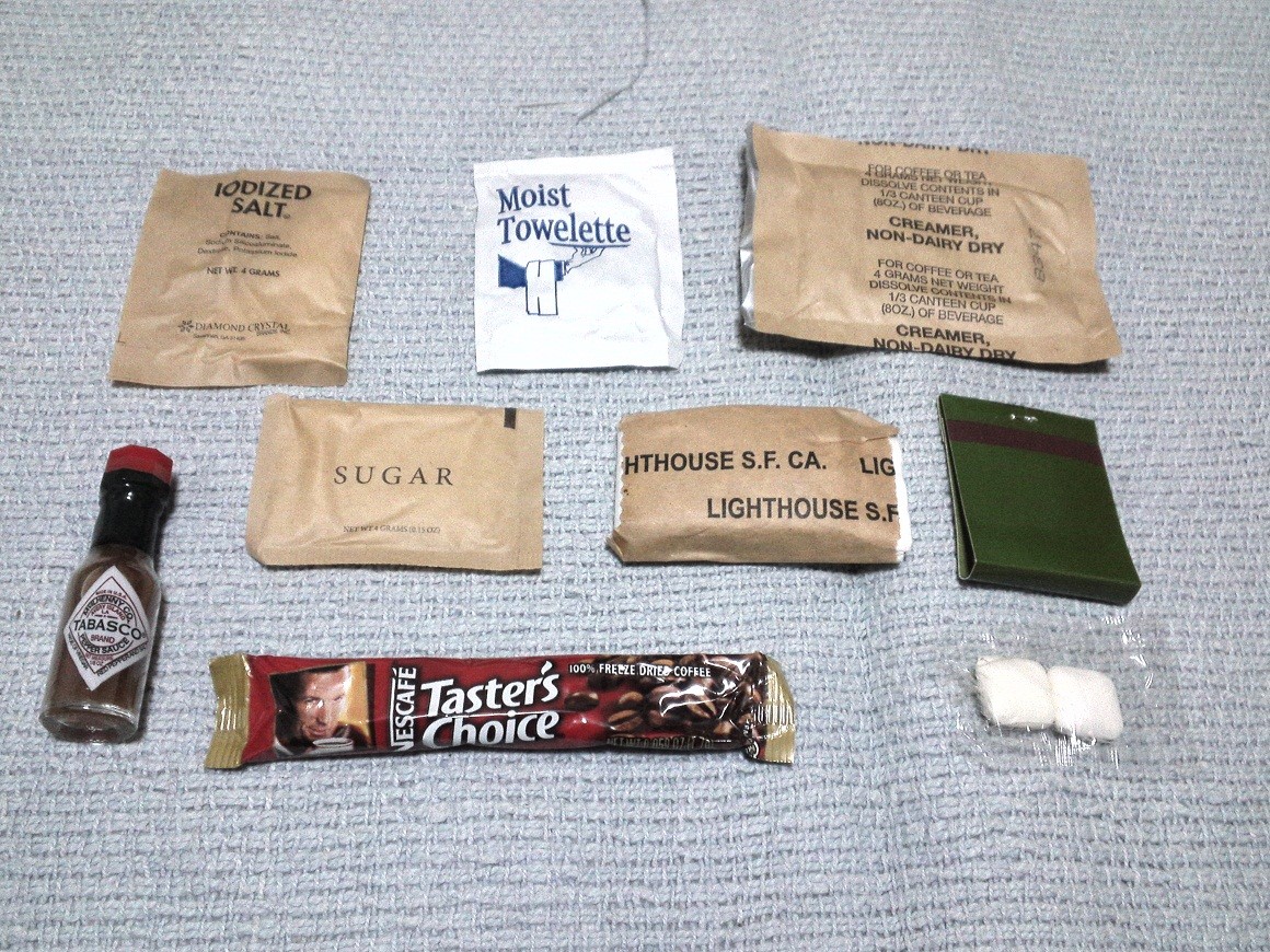 コーヒーは安心のネスレ、タバスコも見たことある奴のミニチュアです。