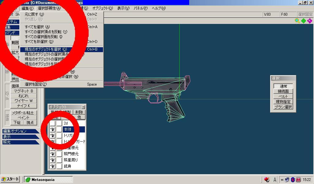 「編集」を開き、「現在のオブジェクトを選択」を押します。